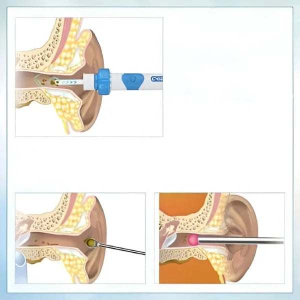 Dispozitivul curăță urechile într-un mod profesionist și rapid, aspirând ceara acumulată într-o parte specială a dispozitivului.
