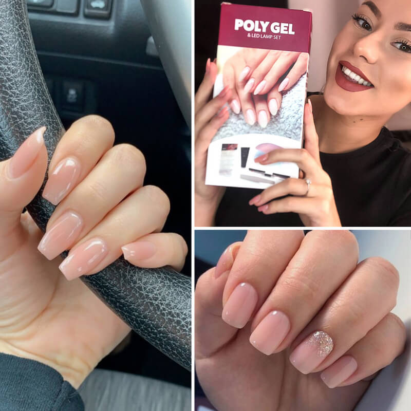 Poly Gel-ul are o nuanță subtilă de roz, asemănătoare culorii naturale a unghiilor. De asemenea, poți personaliza manichiura aplicând orice lac de unghii preferat pentru un look final variat.