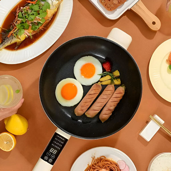 Această tigaie electrică vă permite să pregătiți mese complete fără a avea nevoie de aragaz, ideală pentru orice spațiu.